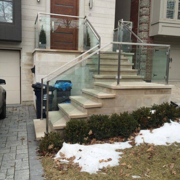 If you love the modern look, frameless glass railings are the way to go! We use 10mm or 12mm tempered glass with many different stainless steel hardware options to match your modern home.